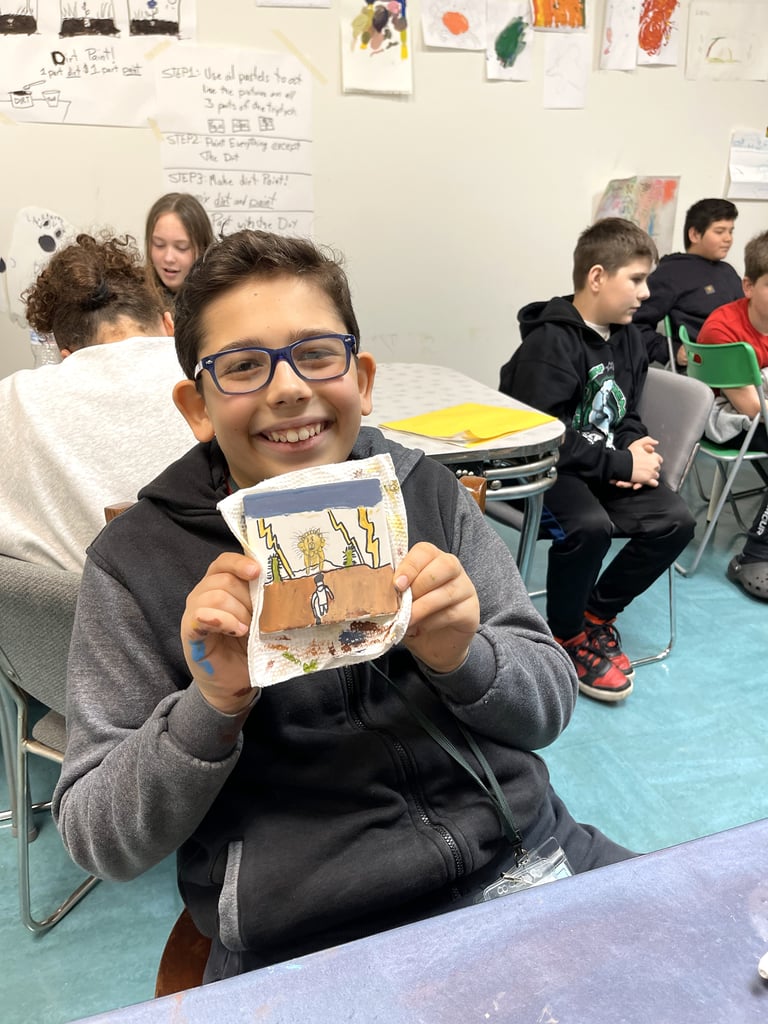 The grant funding was used to pay for the transportation of small groups of students over the course of four field trip days to The Cordial Eye’s new space that it shares with Belonging Books at 438 Main St. in Hyannis. There, each sixth grader was offered guidance from resident artists Kai Barrows and Craig Florence, before getting to work on their own personal masterpiece.