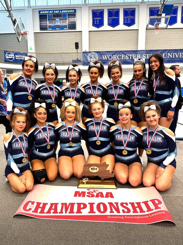 Franklin High School’s cheerleading team won the MSAA Division 1 Championship, marking the team’s fifth state championship in a row. (Photo Courtesy Franklin Public Schools)