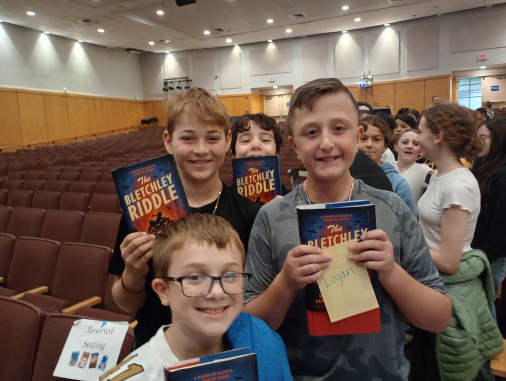 Horace Mann Middle School students eagerly await the opportunity to meet author Steve Sheinkin and have him sign their books. (Photo Courtesy Franklin Public Schools)