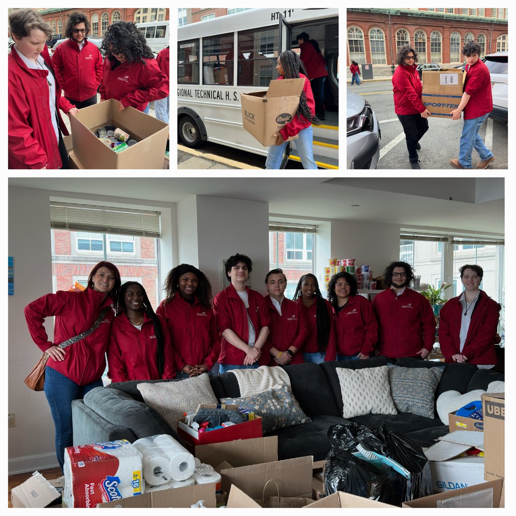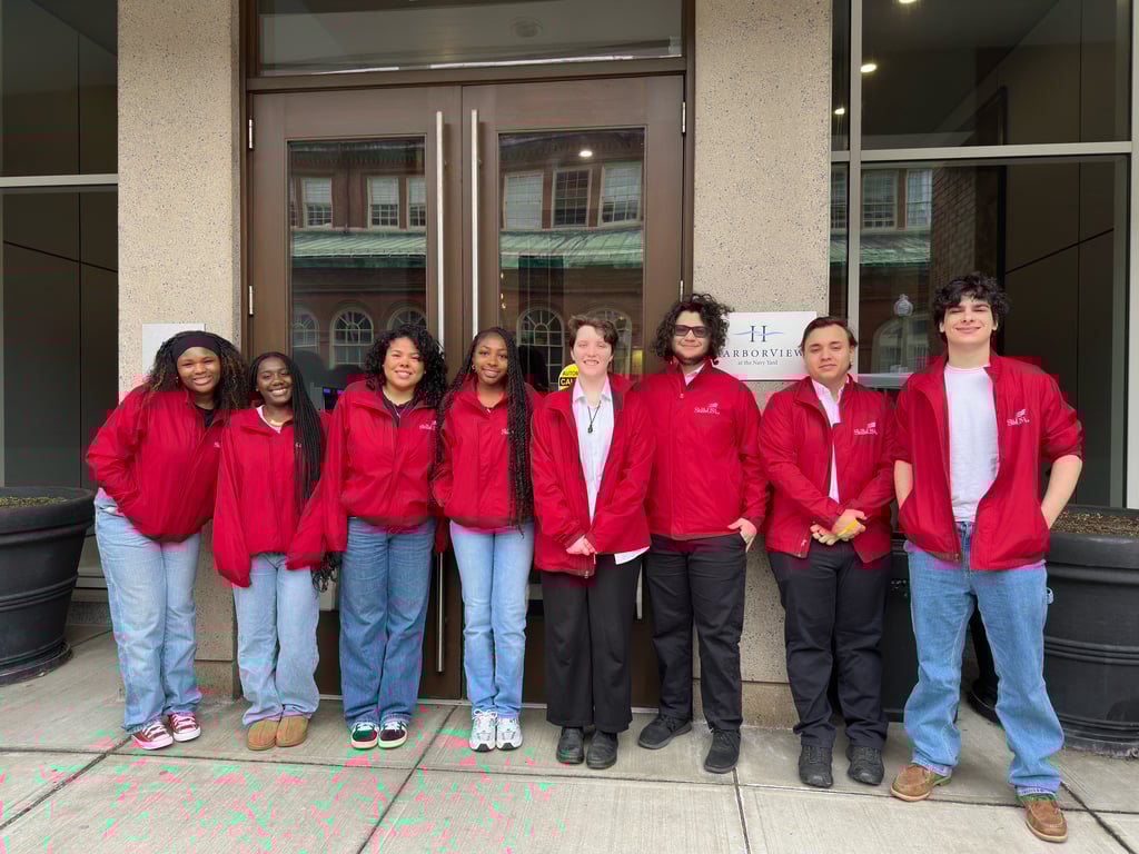 On March 26, the Blue Hills SkillsUSA Leadership team — Ziona Tavares, Thomas Berman, Tia Bain, Phoenix Duggan, Shiyannah Jean-Baptiste, Bernie Foucault, Jackson Schwab, and Aaron Jernigan — and their two advisors, Janice LaVoie and Joann Murphy, traveled to the Ronald McDonald House in Boston to make a significant donation to the organization.