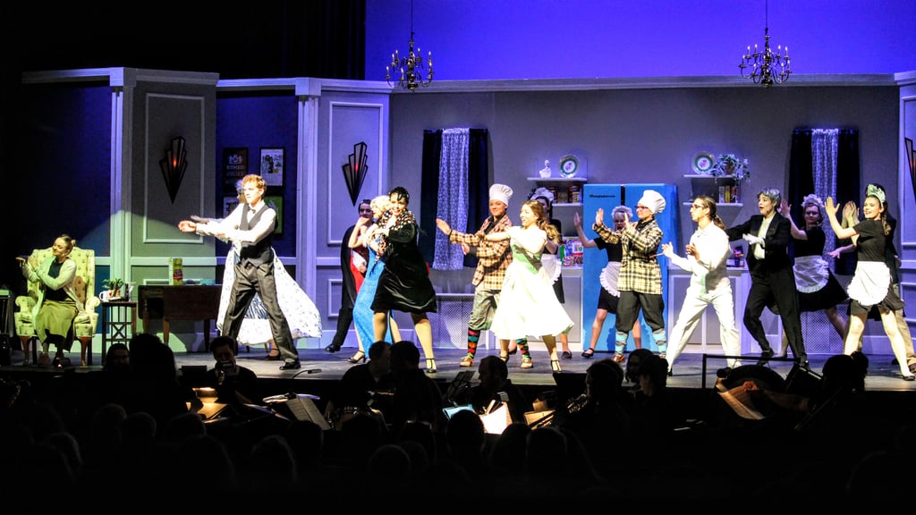 The musical-within-a-play follows the story of glamorous stage star, Janet Van De Graaff, who plans to leave her career to marry an oil tycoon, Robert Martin. However, Janet’s producer panics, fearing financial ruin without his star performer, and he then becomes determined to sabotage her wedding. The director enlists a ditsy aspiring actress, Kitty, and two bumbling gangsters, disguised as pastry chefs, to derail the nuptials.