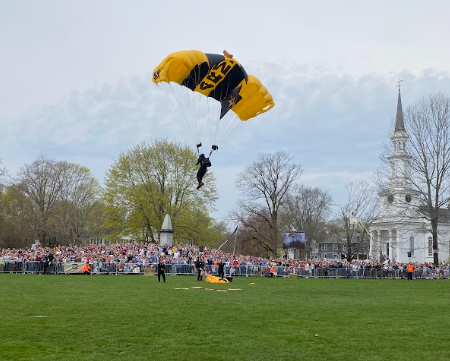 The U.S. Army Golden Knights Parachute Team landed on the common in a flourish.