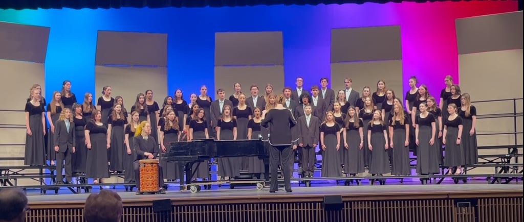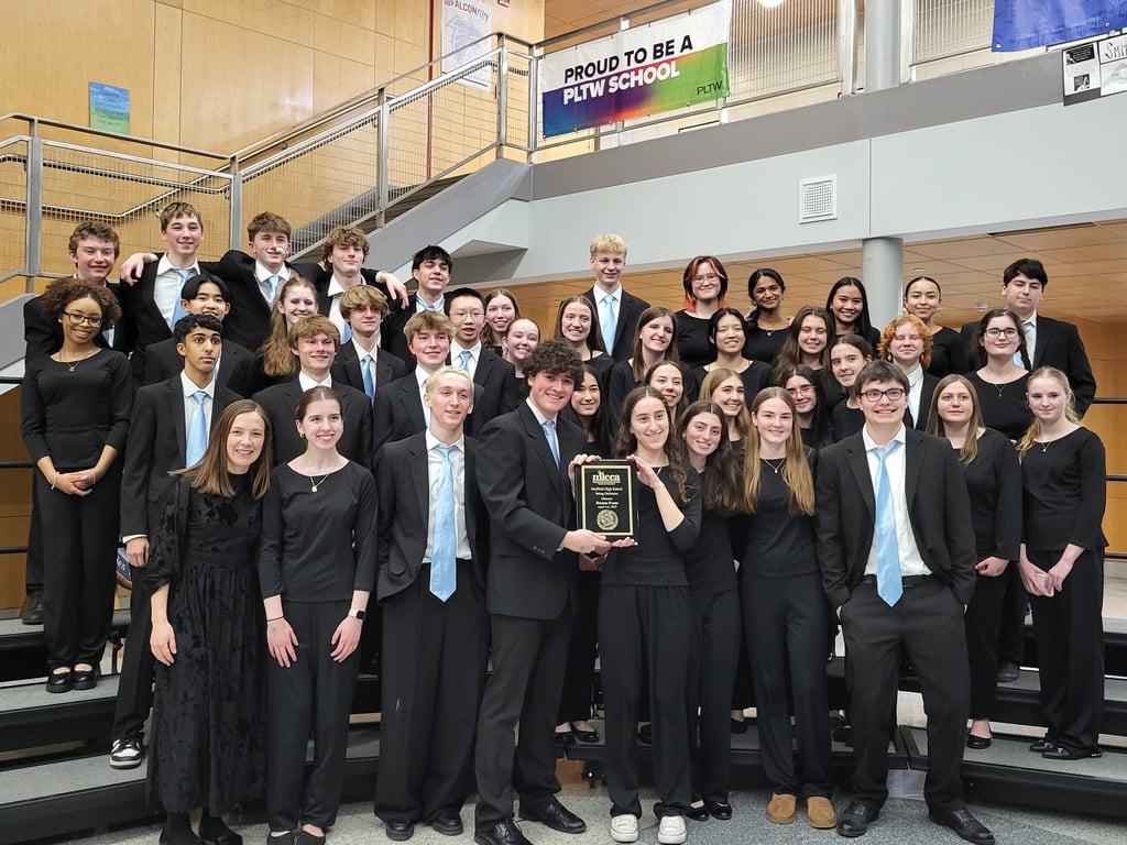 The Medfield High School Choir earned a gold medal at the Massachusetts Instrumental and Choral Conductors Association State Festival. (Medfield Public Schools)