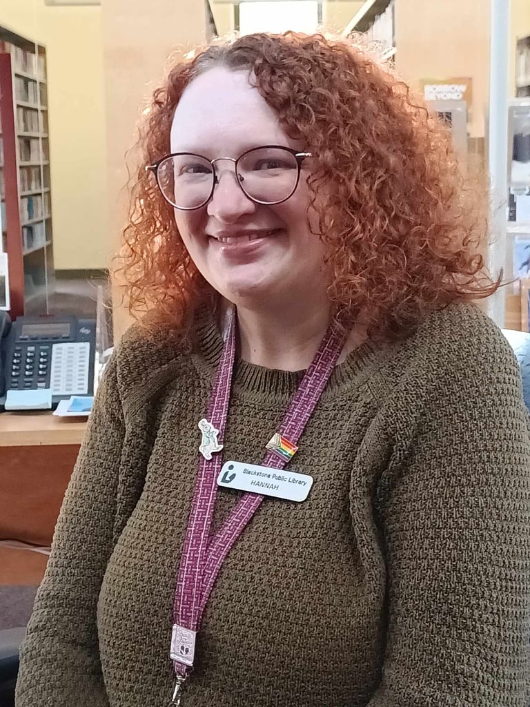 The Blackstone Library invites the community to welcome a new member of the library team, Hannah Rishel, who was recently hired as the library’s Technology Assistant. Rishel, 35, is originally from Pennsylvania and graduated from Penn State with a bachelor’s degree in journalism. Rishel previously worked for the North Attleboro Public Library and the Sharon Public Library.