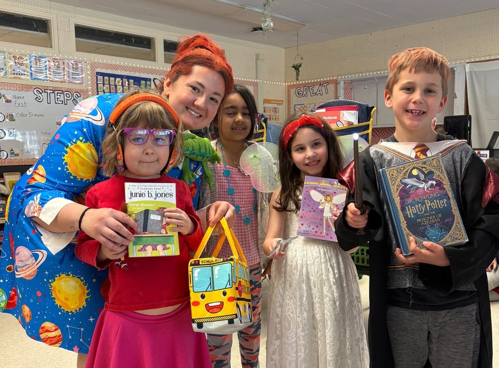 One student dressed up as Junie B. Jones, based on the book “Junie B. Jones: First Grader at Last!,” while another dressed up as Harry Potter. First-grade teacher Jessica Dussi dressed up as Ms. Frizzle from the beloved series by Joanna Cole, “The Magic School Bus.”