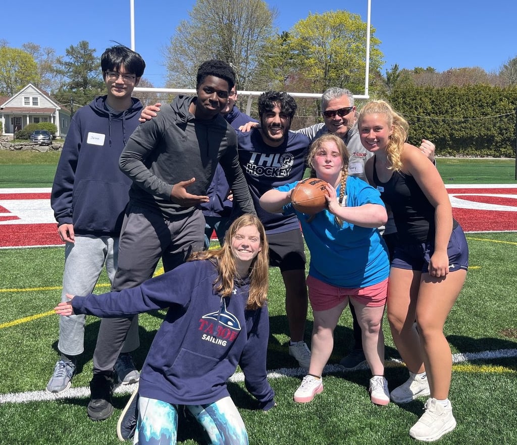 A cornerstone of the day is its partnership model: each Tabor Academy student-athlete is paired with a young student for the entirety of the event. Together, they rotate through sports stations offering a variety of games and drills designed to foster movement, cooperation and fun.