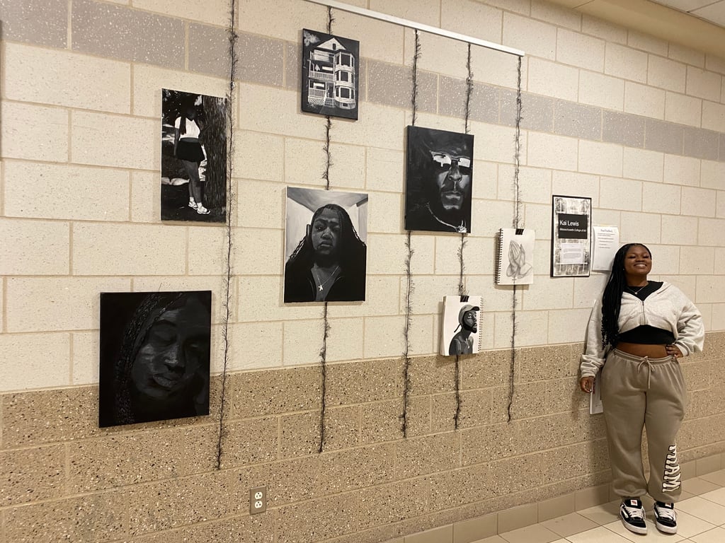The 2025 AP Studio Art Exhibition featured artwork by senior Kai Lewis. (Photo Courtesy Franklin Public Schools)