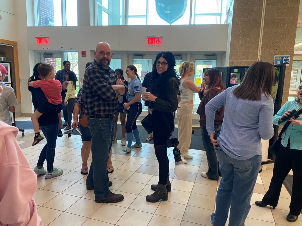 Superintendent Lucas Giguere and Principal Dr. Maria Weber congratulated the student artists on developing their portfolios and putting their capstone works on display.