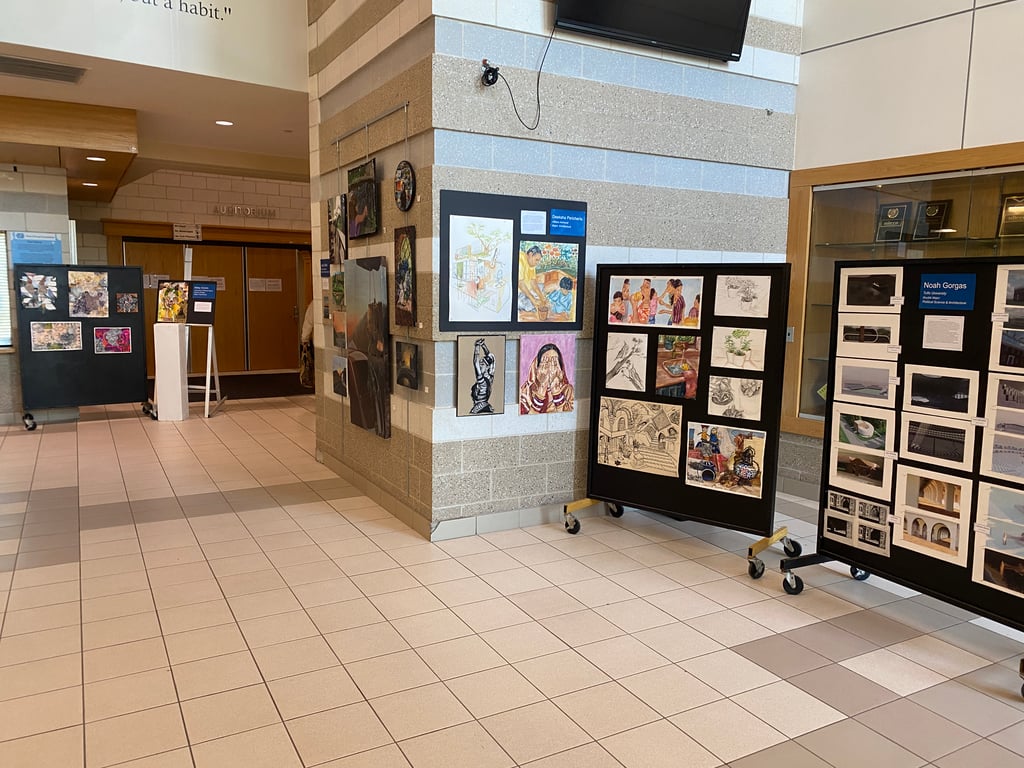 The AP Studio Art Exhibition will stay up in the Panther Lobby and Art Hallway through May 16. (Photo Courtesy Franklin Public Schools)