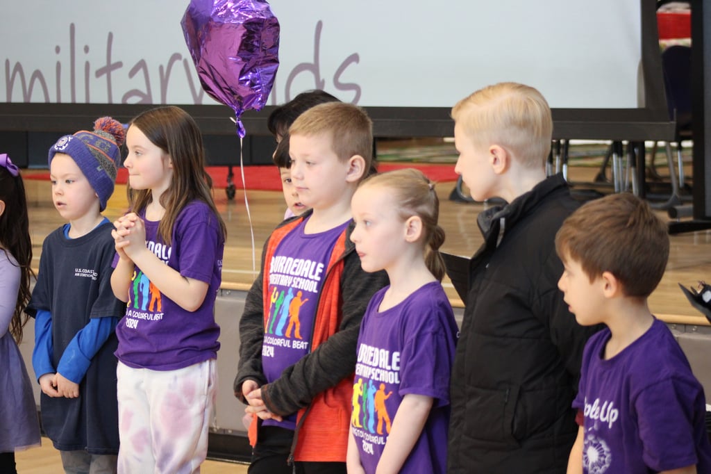 The children of military families were recognized at a recent Purple Up Celebration at the Bourne Intermediate School. Attendees wore purple to show their support for military families. (Photo Courtesy Bourne Public Schools)