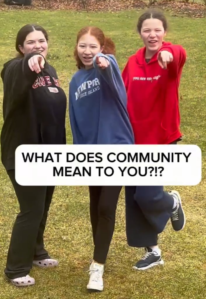 A team of three seventh-grade students from Wilmington Middle School — Harper Hill, Ella Hill and Mia Vargas — created the winning video in the middle school division titled “What Does Community Mean?” The students created an acrostic for the word “COMMUNITY,” giving each letter a meaning — Caring, Open-mindedness, Meaningful, Motivation, Unity, Nice, Inclusion, Thoughtful and You.