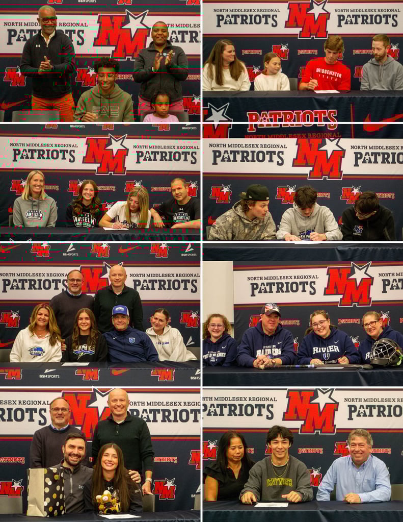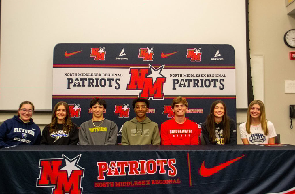 Nine North Middlesex Regional High School (NMRHS) students were celebrated on Tuesday, May 20, surrounded by their families, teammates and friends as they signed commitment letters to play sports at the colleges and universities of their choice.
