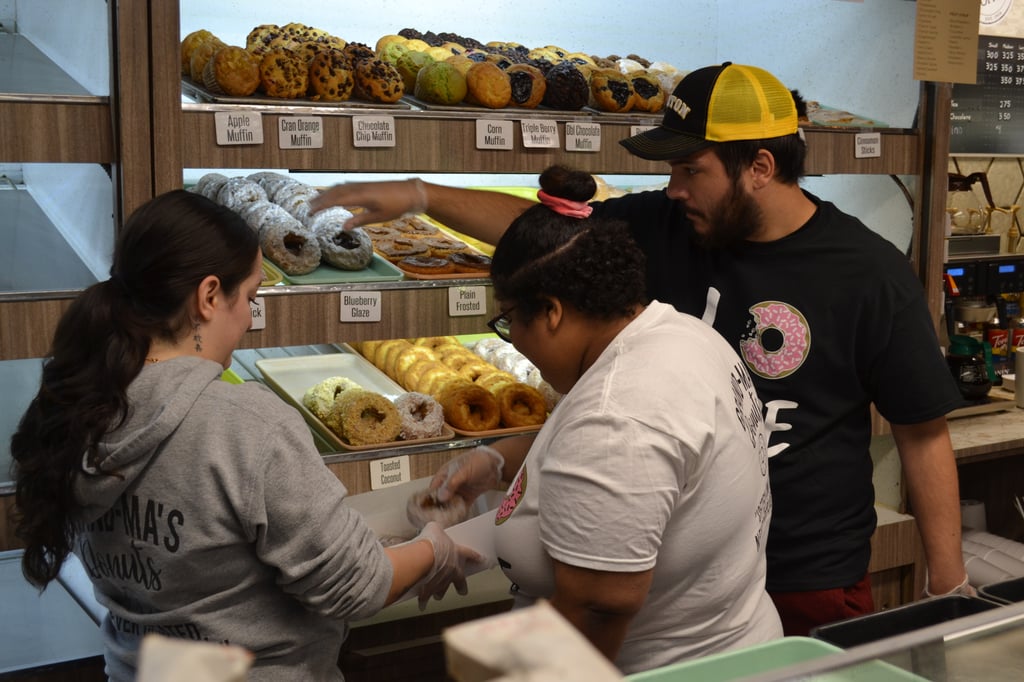 NEW BEDFORD — Jaitzy Burgos and Cedric Duro both hustled to hand out honey-dipped rings and Boston creams. They wore donut designs on their T-shirts and smiled at hungry, happy customers, as they learned life lessons from behind a donut shop counter.