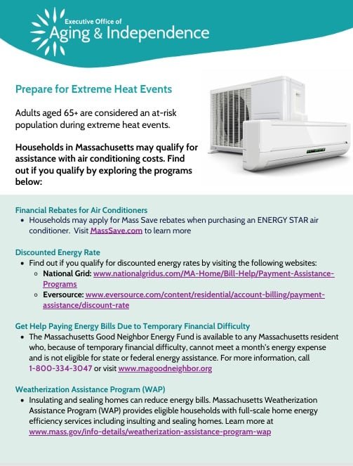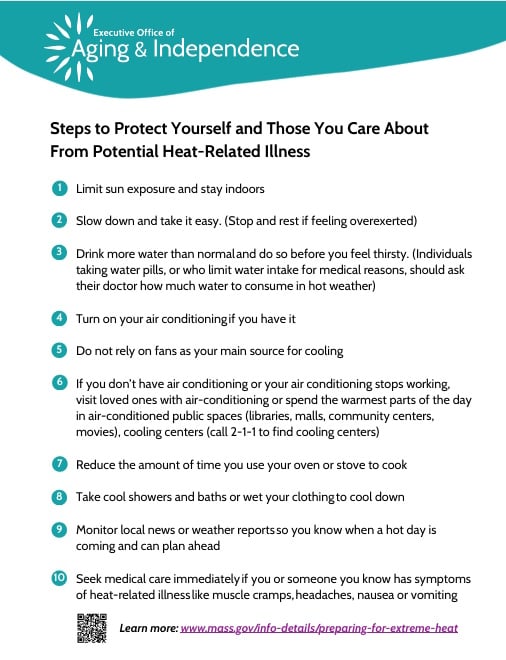 - If someone doesn’t have air conditioning, they should seek relief from the heat during the warmest part of the day in places like libraries, theaters, malls, etc.