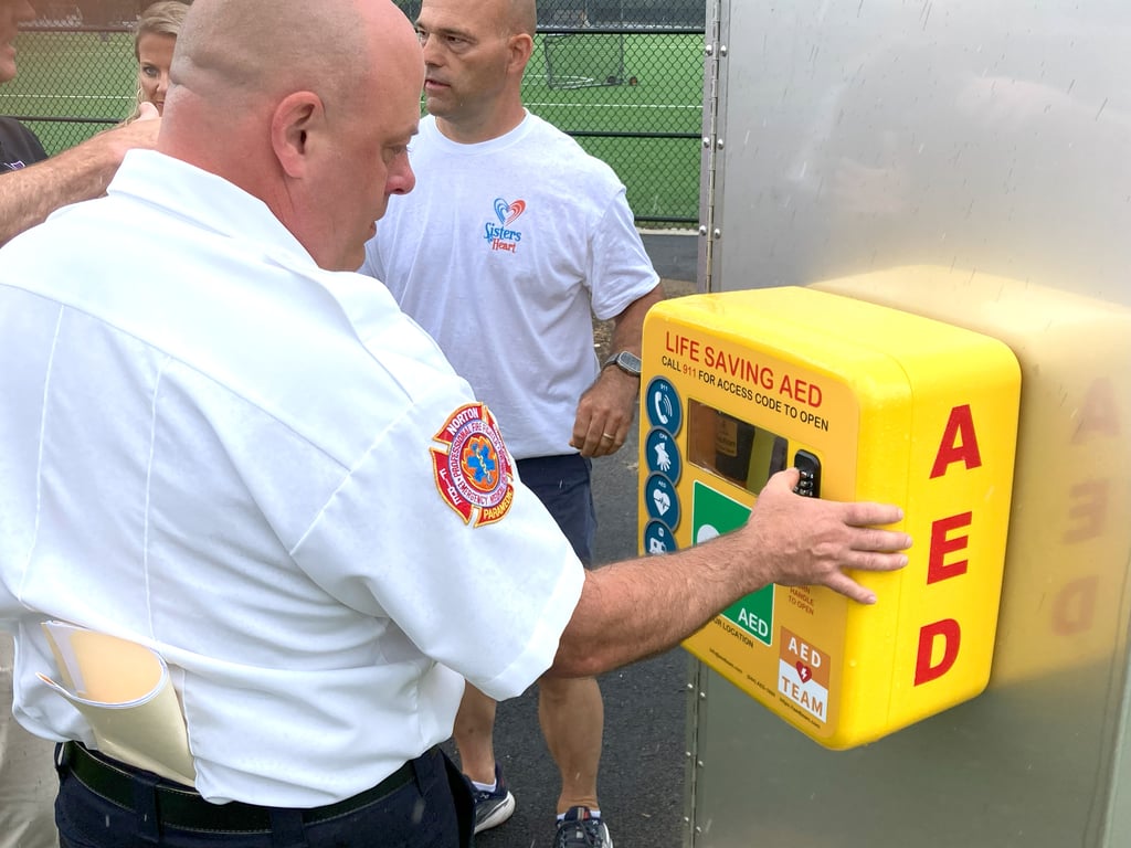 In addition to the AED installed next to the backstop at Norton Veterans Memorial Field, the new AED locations include:
