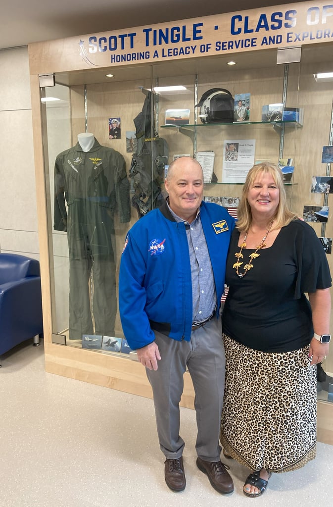 As students return for class next Tuesday, they will be greeted by an 8-foot-by-9-foot exhibit showcasing the career of Commander Scott Tingle.