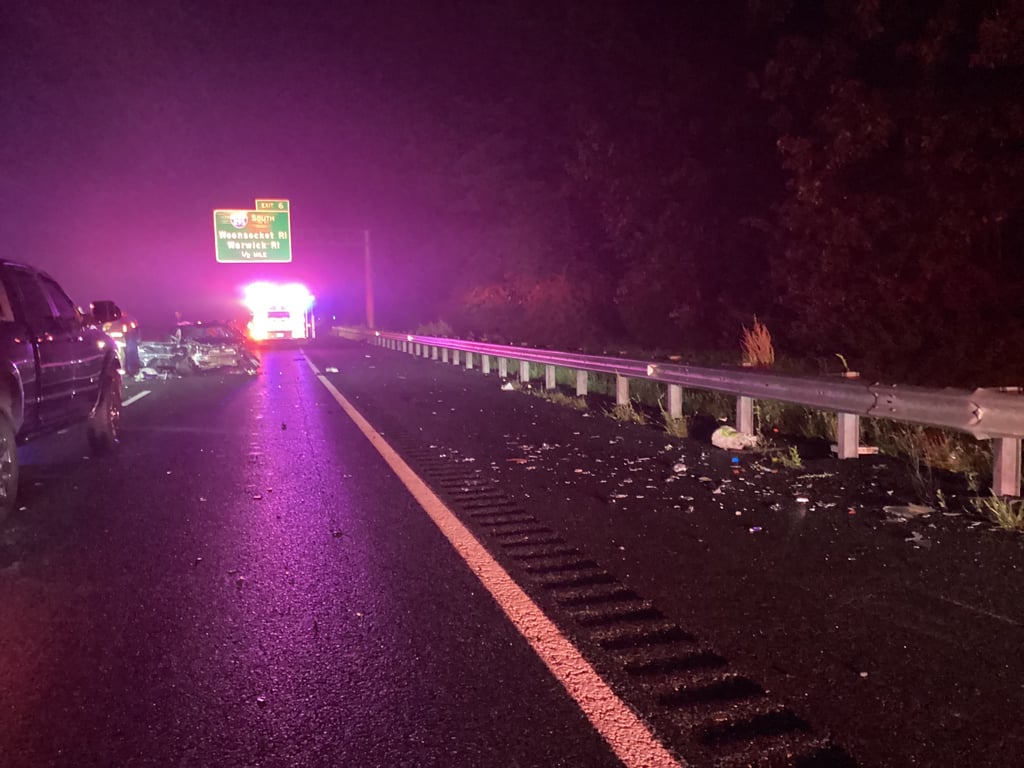 On arrival on I-95 north early Sunday morning, Attleboro firefighters encountered a debris field stretching nearly a quarter mile involving two vehicles. (Photo Courtesy Attleboro Fire Department)