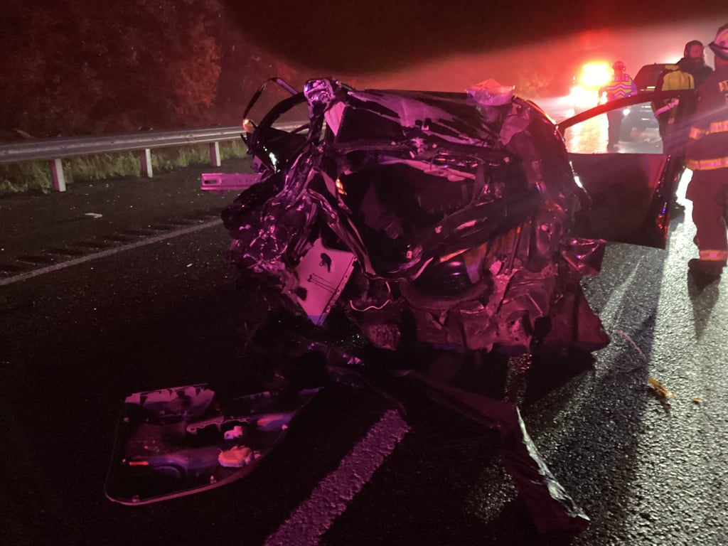 A man was critically injured as a result of a two-vehicle crash on Interstate 95 north early Sunday morning. (Photo Courtesy Attleboro Fire Department)