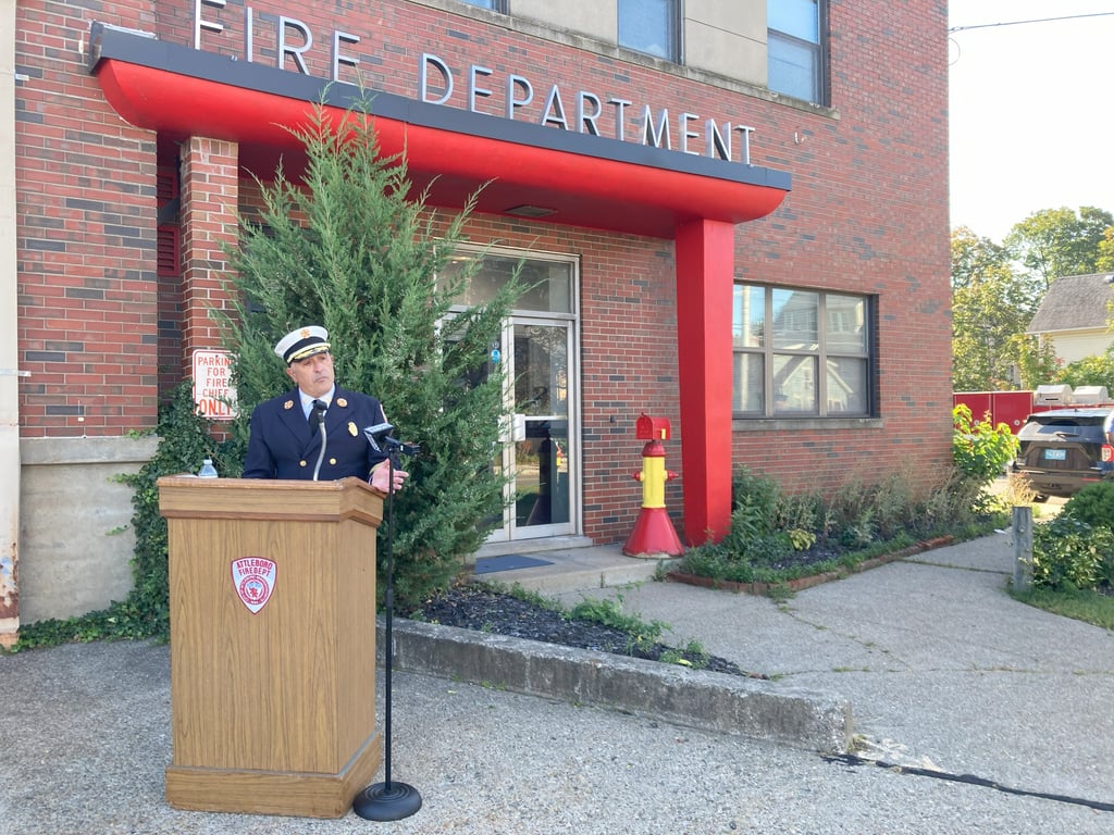 Attleboro Fire Chief Scott T. Lachance spoke to the crowd during the annual Sept. 11 Remembrance Ceremony held on Thursday morning at the Attleboro Fire Department Headquarters. (Photo Courtesy Attleboro Fire Department)