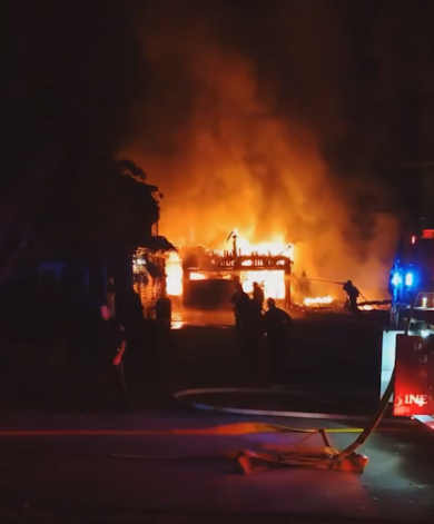 North Reading Engine 3, made up of Captain Brian Nash and Firefighters Jeff Carey, Cory Harris and Liam Tannian, arrived on scene and observed the home’s detached garage fully involved in flames, with fire spreading to the main body of the home.