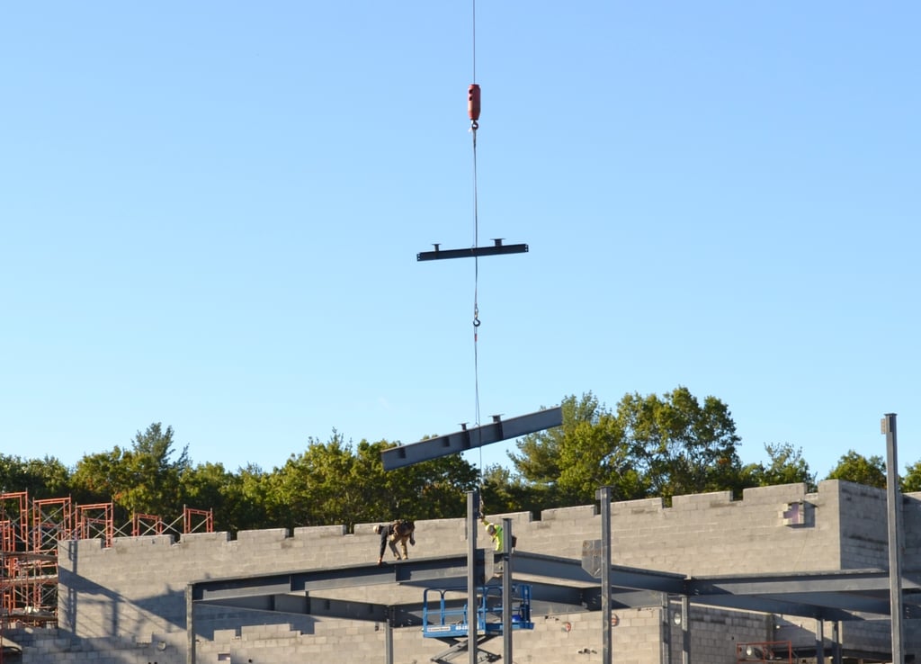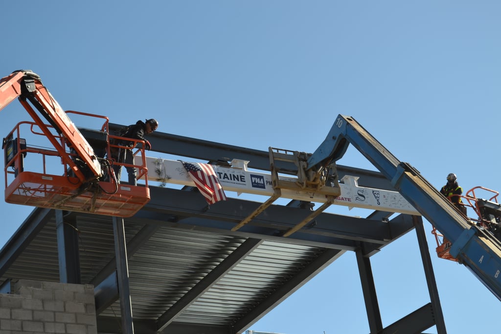 The signed, ceremonial beam was hoisted into place. (Photo Courtesy Easton Police Department)