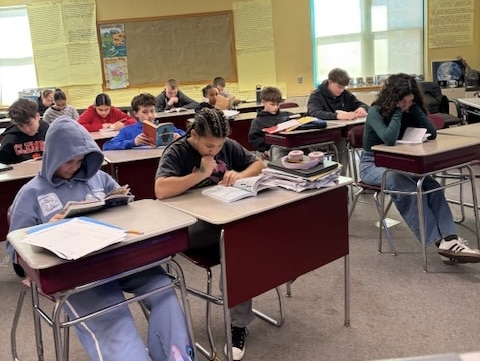 Wamsutta Middle School students read as part of the March madness competition. (Photo Courtesy Attleboro Public Schools)
