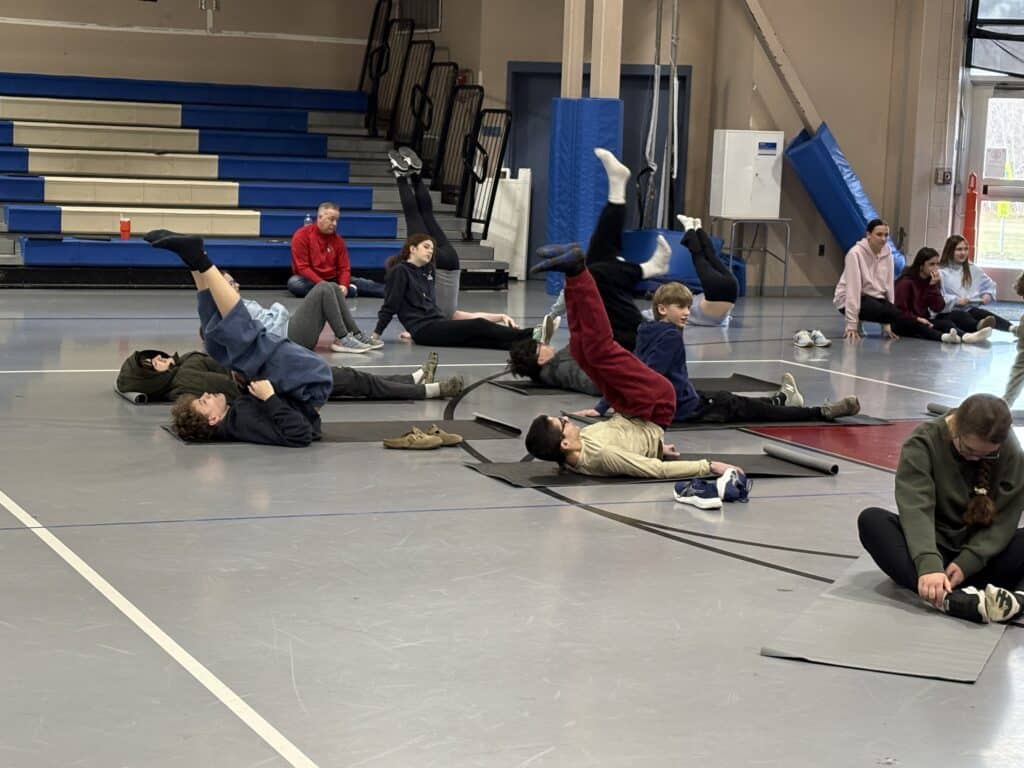 Students practiced stretching exercises during Wellness Morning held at Old Rochester Regional Junior High School on Tuesday, March 24. (Photo Courtesy Old Rochester Regional School District and MA Superintendency Union #55)