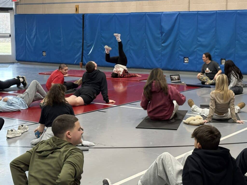 The athletic stretching station brought students through guided exercises that encouraged self-regulation and mindfulness, giving students a quick, healthy way to manage stress and return to learning with improved focus. (Photo Courtesy Old Rochester Regional School District and MA Superintendency Union #55)