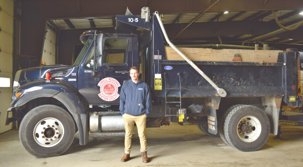 Lowell Regional Water Utility Water Distribution Superintendent Tim Brinkman stands in the Utility’s garage with a dump truck that is used to maintain the approximately 215 miles of water pipes in Lowell. (Photo Courtesy City of Lowell)