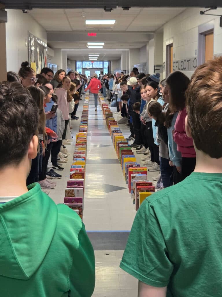 Thomas Blake Middle School Collects 320 Boxes of Cereal for Third Annual Grade 6 Cereal Drive Domino Run