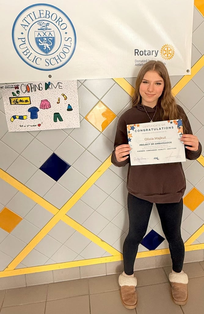 Olivia Majkut, an eighth grader at Coelho Middle School, was selected to serve as Attleboro’s Project 351 Ambassador. (Photo Courtesy Attleboro Public Schools) ATTLEBORO —…