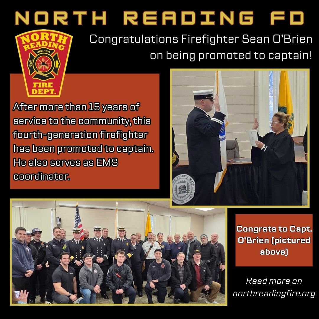 The North Reading Fire Department congratulates Firefighter Sean O’Brien on being promoted to the rank…