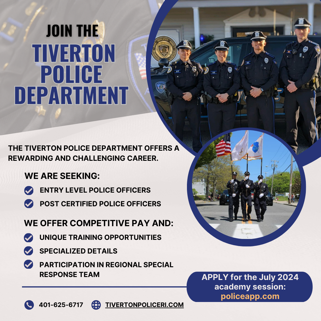 TIVERTON — Chief Patrick Jones is pleased to announce that the Tiverton Police Department is seeking…