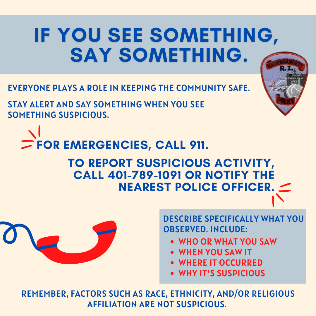 Narragansett Police Department Reminds Residents and Visitors: If They See Something, Say Something