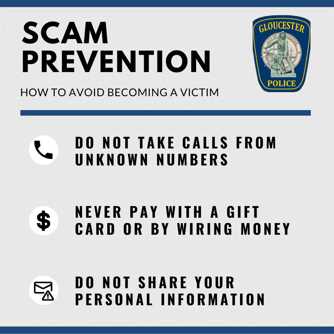 GLOUCESTER — Chief Edward Conley and the Gloucester Police Department wish to share scam prevention…
