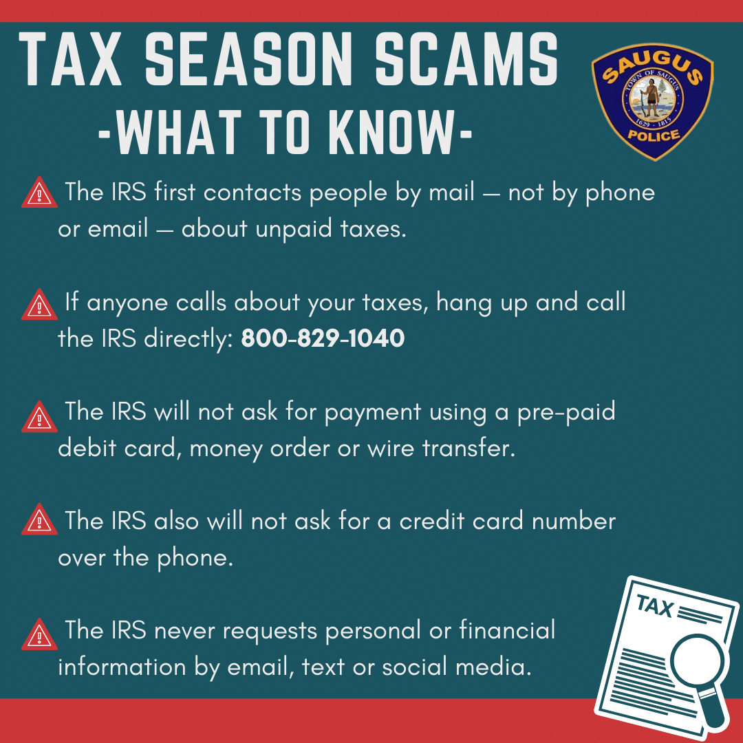 SAUGUS — With tax season now underway, Chief Michael Ricciardelli and the Saugus Police Department would…