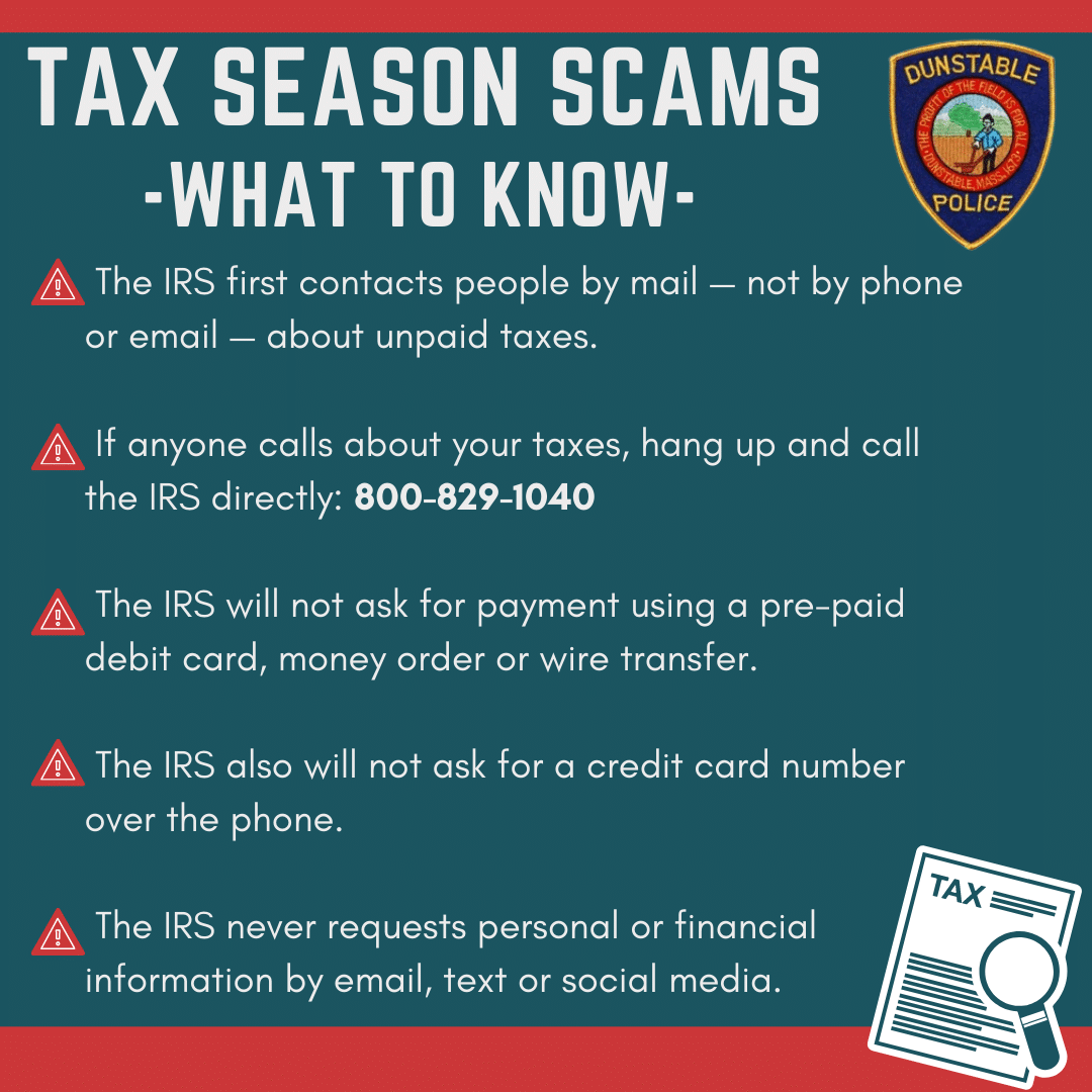 DUNSTABLE — With tax season now underway, Chief James W. Dow and the Dunstable Police…