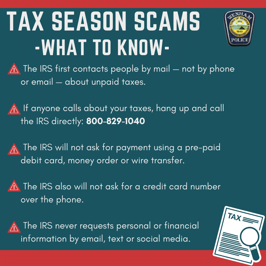 Wenham Police Warn Residents about Scams Involving Tax Returns