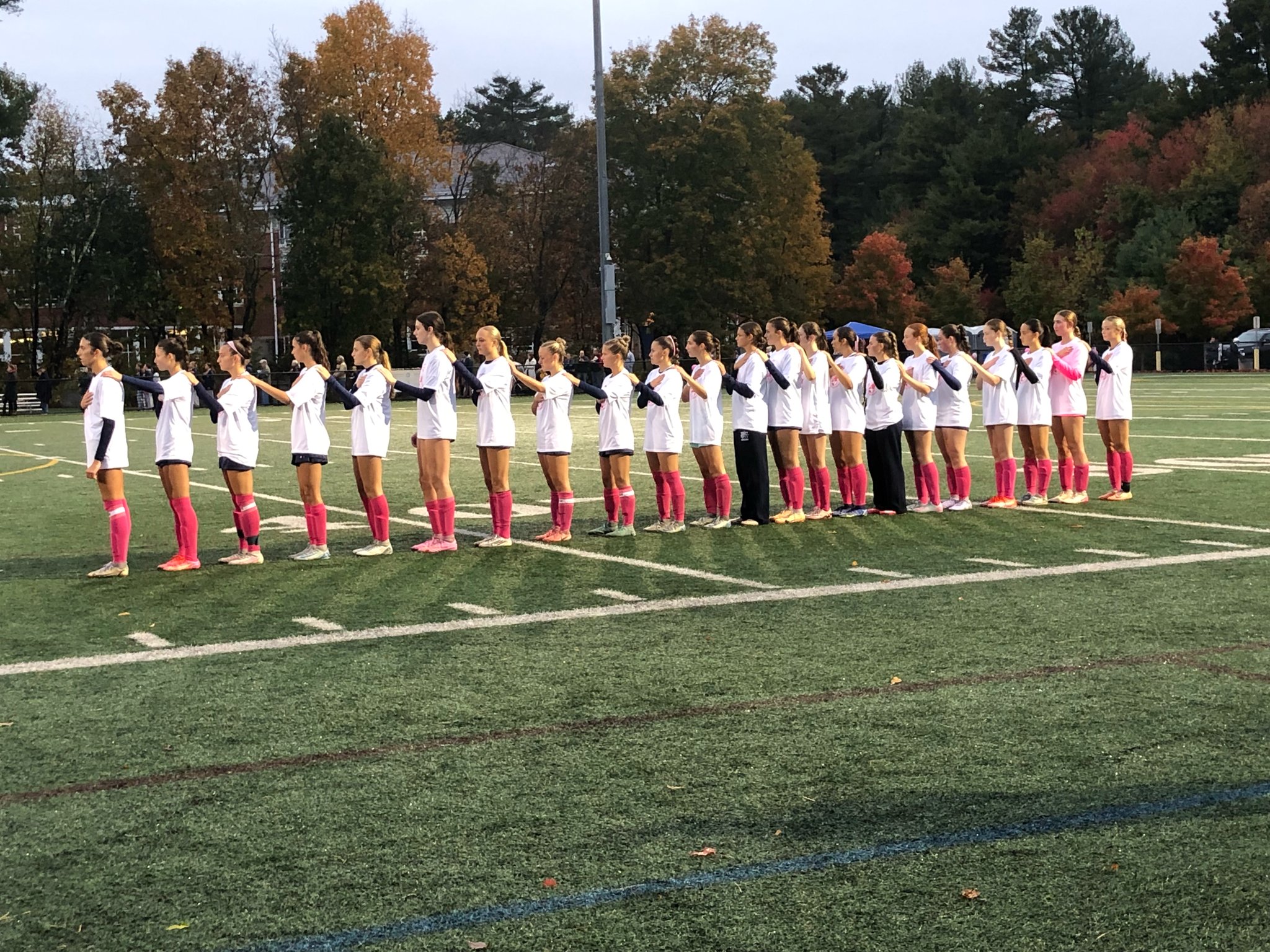 The Medway High School girls varsity soccer team stood in solidarity during the National Anthem…