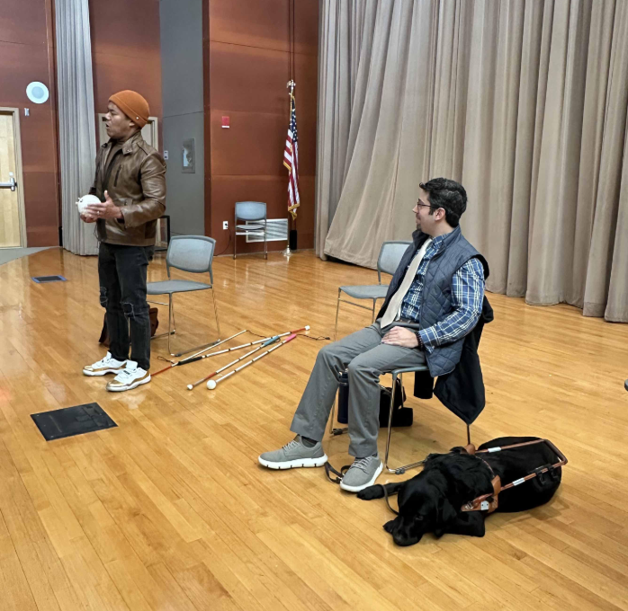 Joe Buizon, left, Director of Programs and Services at the Massachusetts Commission for the Blind,…