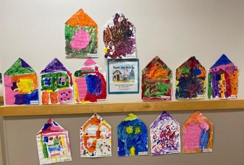 Preschoolers’ artwork on display during the 2nd Annual Pop Art event at F.X. O’Regan Early…