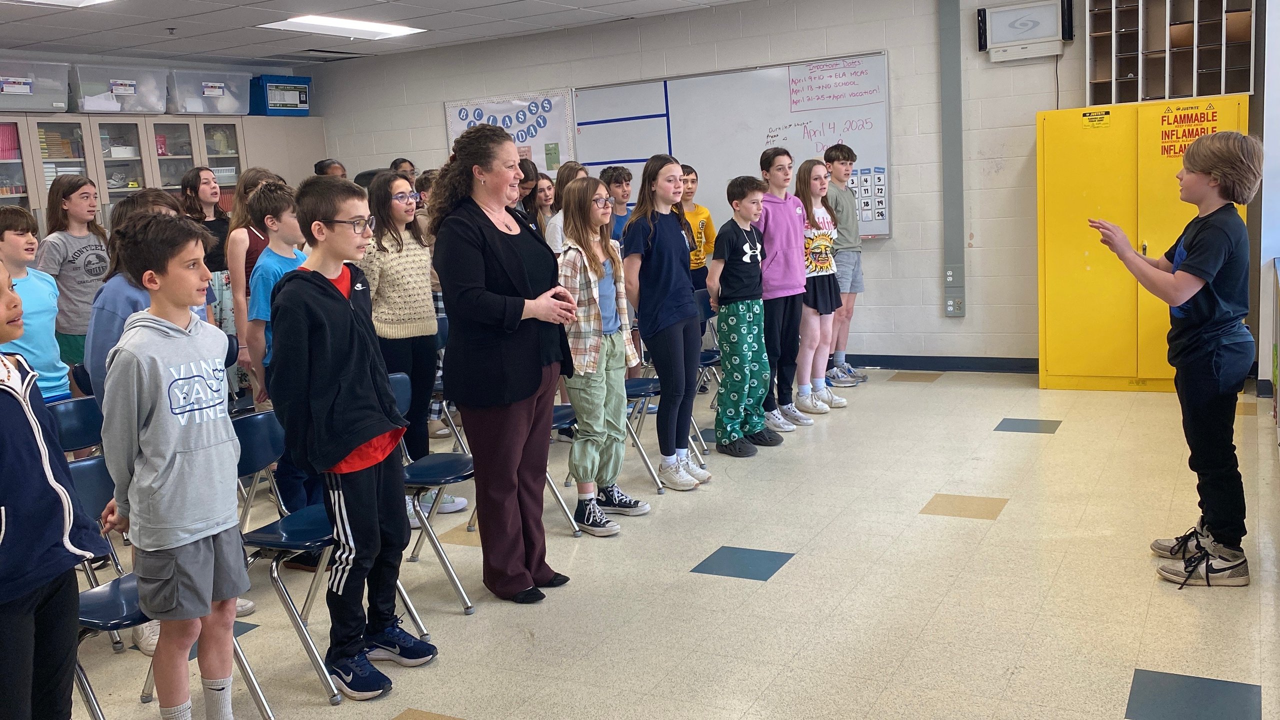 Horace Mann Middle School teacher Joe Corey’s Team Lightning recited “Democracy” by Langston Hughes. (Photo Courtesy…