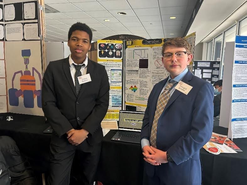 Southeastern Regional Vocational Technical High School students Olutayo Oyewusi and Finnegan Sommer earned first-place awards for…