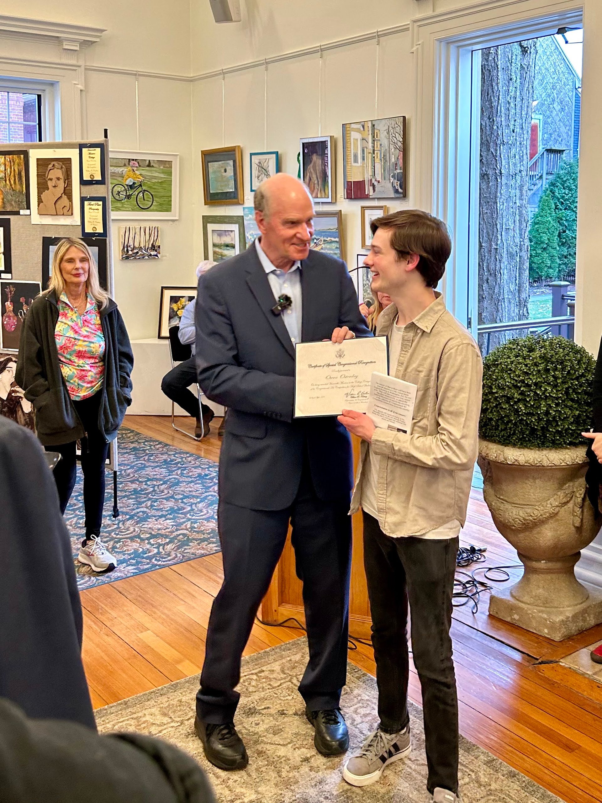 U.S. Congressman Bill Keating congratulated Old Rochester Regional High School’s Owen Osterday after the student…