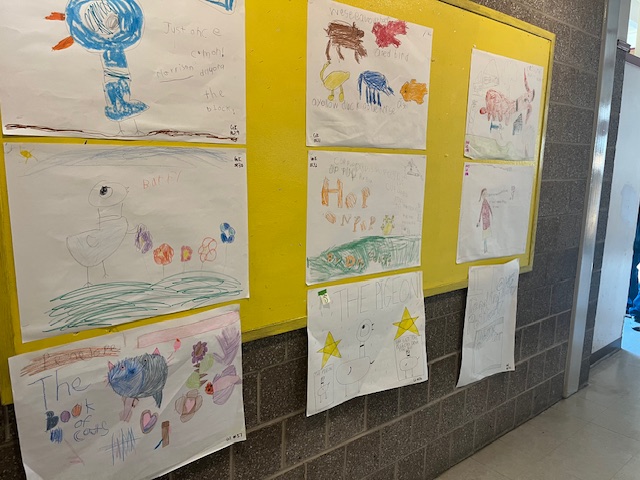 Posters created by Green Meadow students, inspired by their favorite books. (Photo Courtesy Maynard Public…