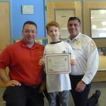 Jacoby and his father walked downstairs and saw smoke and fire in the garage. While his father investigated, Jacoby recalled information he learned two months earlier when Firefighter Anderson came to talk to his class about fire safety as part of the S.A.F.E. program. Jacoby dialed 911 and clearly and calmly stated his name, address and described the problem to the dispatcher, just as he was taught by Firefighter Anderson.