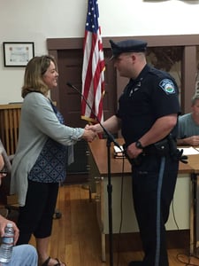 Officer Corin Campbell has been promoted from the rank of reserve officer to full-time patrol officer at a ceremony with the Ashby Board of Selectmen on May 31. He began work in his new role on June 4.