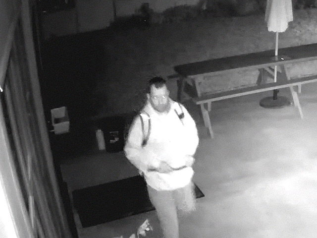 Upon arrival, police found a window had been pried open. Video footage shows a white male, unshaven and wearing a backpack, in the store near the cash register. When the building alarm sounds, the man stops and flees the store. The suspect can then be seen running outside and away from the property.