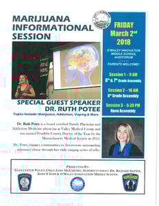 Dr. Potee will be speaking with middle school students and the greater Gloucester community about marijuana, addiction, vaping and more.