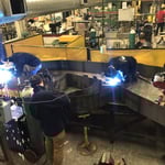 Dubbed “Mega Kitty,” the cat’s design was completed in Autocad and its blueprints were fed into a Vicon plasma cutter that created the metal pieces used to put it together. Students used a power shear to cut the edges and formed the metal in rollers and a brake machine. The pieces of metal were then tacked together with welding tacks, and a skeleton framework was built inside the cat to keep it from buckling.